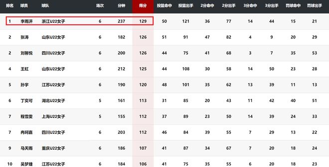 她是全运会U22女篮赛场的铁人,6场比赛4次打满全场,另外两战总共休息了4分钟。她是全运会U22女篮的得分王,率领浙江U22女篮夺得了亚军,并且创造了浙江女篮在全运会篮球项目上的最