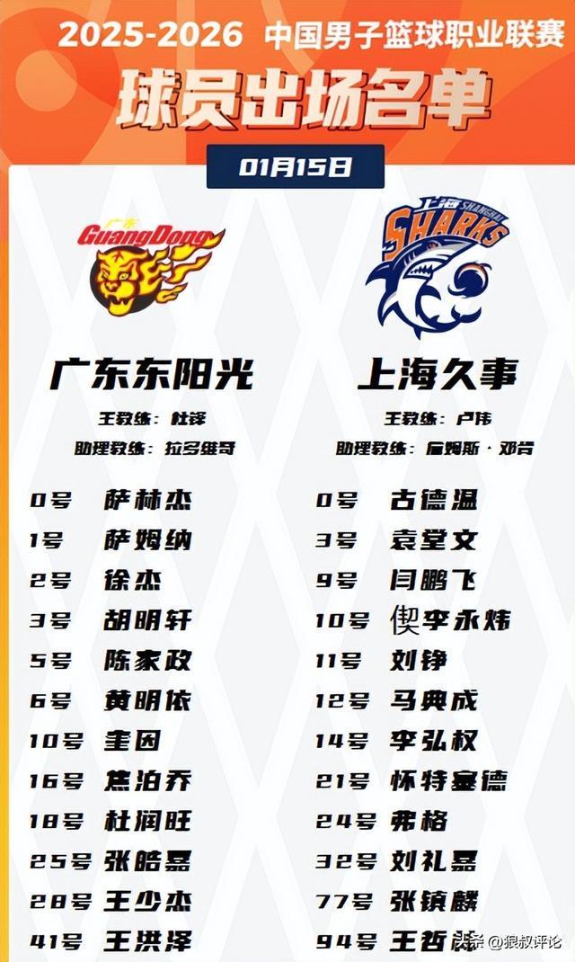 北京时间1月15日,CBA常规赛继续开打,广东男篮主场迎战上海男篮。
