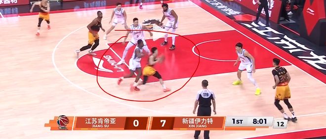 阵地战防守,庞峥麟也有出色表现。这一球庞峥麟发现队友补防后漏人,自己又去帮队友协防卡位,并且协防成功,让新疆球员吴冠希接球失误,说明他拥有不错的团队防守意识