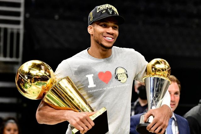 字母哥:1次(2020-21赛季),2021年,字母哥带领雄鹿队夺冠的同时,凭借系列赛全程的出色发挥(尤其是第六场50分的关键表现),毫无悬念地当选总决赛MVP。从赛事成就来看,字母哥的表现远超同期东契奇。