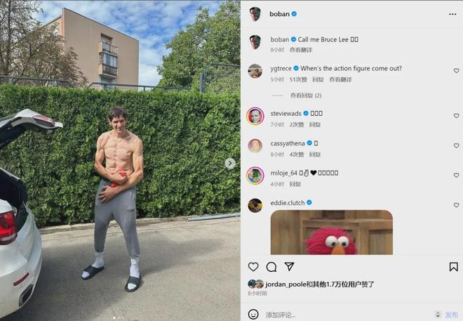北京时间9月22日,博班-马扬诺维奇在Ins晒出自己的肌肉照,并写道:“叫我李小龙!(Call me Bruce Lee)”。乔丹-普尔、保罗-乔治等NBA球员,给这组照片点赞。尽管博班已经无球可打,但他