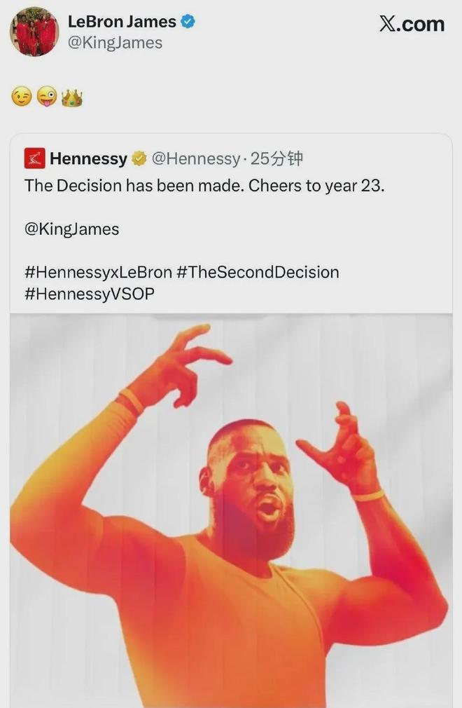 詹姆斯正式宣布,决定将自己的天赋带给著名白兰地品牌轩尼诗。不是哥们,煞有其事搞这么一出敢情就是为了打广告?还有,广告商究竟给了多少钱?才能让詹姆斯冒着败坏风评的风险进行配