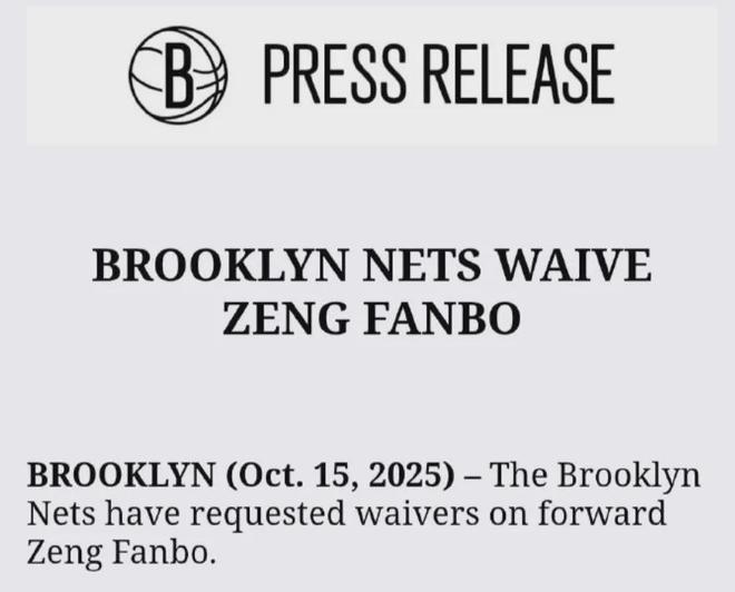 今天凌晨,篮网官方宣布,曾凡博被裁员。这个消息其实也是意料之中的,只不过操作得让人感觉很不舒服,非常冷血无情。在刚结束没多久的2025年NBA中国赛上,曾凡博代表篮网出战,但他只