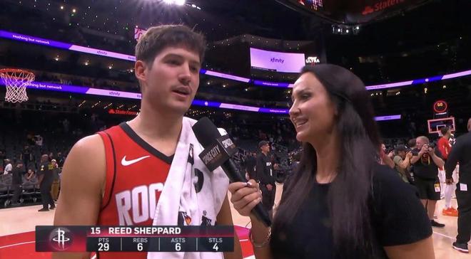 本场比赛,火箭控卫谢泼德发挥出色,全场出战29分钟,22投12中,三分球13投5中,在没有罚球的情况下,他打出了29分6篮板6助攻4抢断3盖帽的全面数据,并且正负值高达+11。