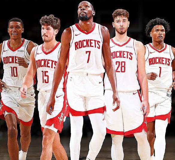 进攻端除了杜兰特外,还有申京、史密斯、汤普森、伊森、谢泼德和奥科吉场均得分都上双,全队7人得分上双,在联盟中非常罕见!