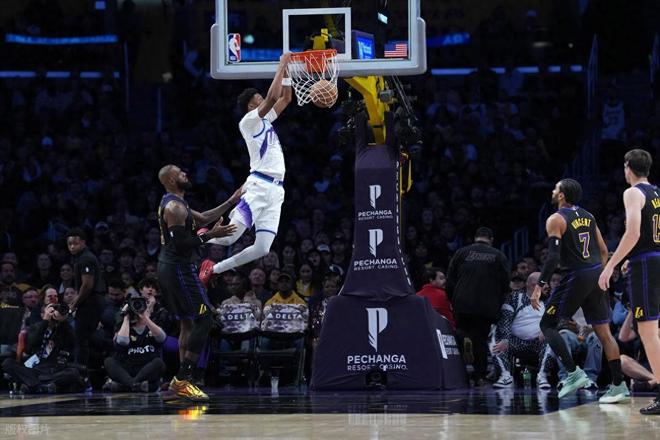 比赛刚开打那会儿,湖人明显不在状态,进攻端跟卡壳了似的,前7分钟才磨磨蹭蹭拿了10分。反观爵士那边,乔治和马尔卡宁跟开了挂一样,乔治突破上篮、马尔卡宁外线三分,两人轮流轰炸湖人防线,第一节打完就领先了9分。