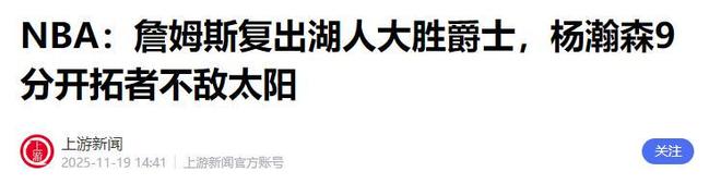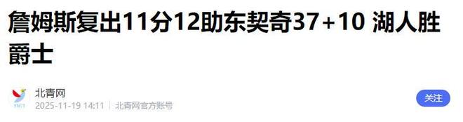 作品声明:内容取材于网络11 月 19 日湖人主场氛围炸裂!40 岁詹皇缺阵 14 场赛季首秀,携第 23 季创历史,率队 140-125 逆转爵士豪取三连胜,稳坐西部前四!他带着第23个赛季的身份登