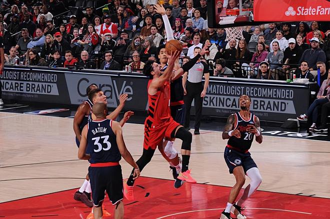 本场比赛中,开拓者的先发控卫德尼-阿夫迪亚(Deni Avdija)确实是相当努力,但是他的努力还是没有办法帮助球队取得胜利。阿夫迪亚全场出场39分19秒,投篮18中10,三分线外7中2,罚球8中7,得到了全队最高分29分外加9篮板9助攻1盖帽的准三双数据,还有7次失误和3次犯规,正负值为-22。阿夫迪亚在进攻端还是展现出了不俗的突破能力和终结能力,他也同样具备一定的投射能力。阿夫迪亚在传球和组织方面也是起到了很好的效果的。阿夫迪亚在进攻端算是起到了后场核心的任务,只是由于球队其他球员实在是不具备基本的传球能力和组织能力,阿夫迪亚不得不承担起过多的责任,他也是因此显得有些不堪重负。阿夫迪亚的表现一旦出现下滑,球队也就没办法撑住局面了,最终他们也是输掉了这场比赛。