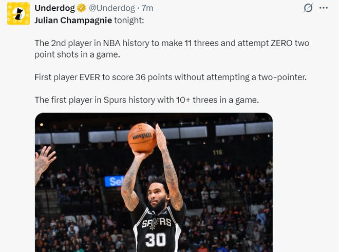 6.他也是马刺队史首位出手全来自三分球拿到35+的球员;