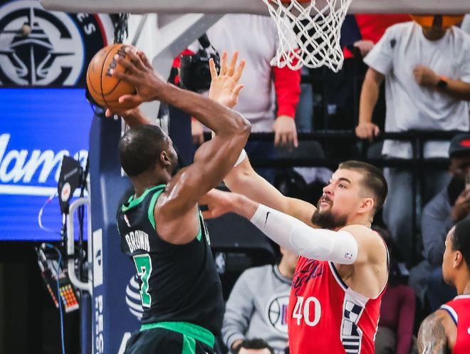本场比赛快船有三个问题,第一,没人抢篮板球。大洛佩兹确实能拉开空间,但是别指望他有稳定护框。而祖巴茨本场复出后,存在感更低,他确实在努力冲抢篮板球,但是进攻端完全没有统治力,凯尔特人替补的加尔扎都能单防限制住祖巴茨,祖巴茨打得太软了。篮板球比凯尔特人少了十几个,直接导致二次进攻严重缺失。当然,如果比拼三分投射,快船更比不过凯尔特人,布朗和怀特犹如两个三分投射机器,替补席还有安芬尼西蒙斯这个超级三分手,轻轻松松拉开分差。