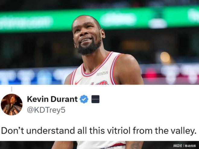 此举言外之意很明显,该网友就是想表达:经常陷入负面情绪的杜兰特,才是上赛季真正影响太阳更衣室的那个人。