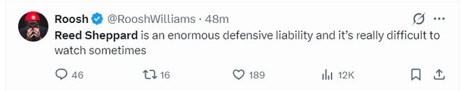 休媒疯狂朝着谢泼德开炮,Roosh:里德-谢泼德是个超级的防守漏洞,有时看着他打球真是让人难受。