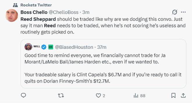 休媒:我提醒一下大家,从薪金的角度来看,我们没有可能交易得到莫兰特、三球、哈登这样的球员,我们可以交易的资产卡佩拉670万、芬尼史密斯1270万而已。