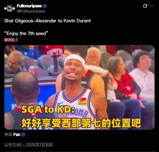 北京时间1月16日,比输球更沮丧,更扎心的是,杜兰特惨遭雷霆新老大嘲讽,对比亚历山大,他最大的问题是没根了。