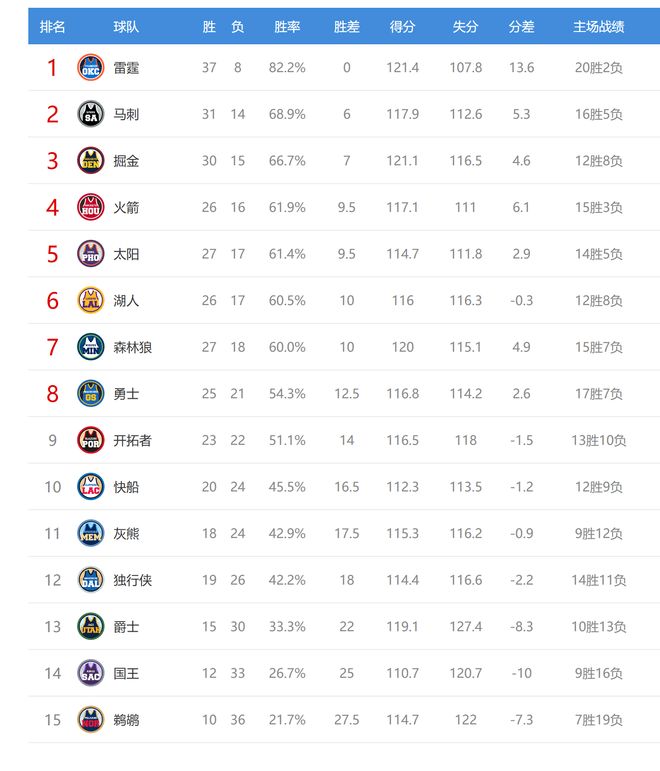 马刺赢球后31胜14负,排名西部第二,领先第三的掘金1个胜场。