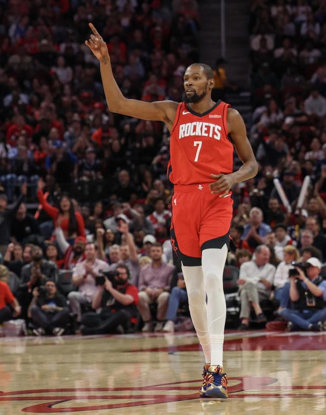 5战场均31+5+3!3项命中率太亮眼!杜兰特杀疯了,火箭战绩3胜2负