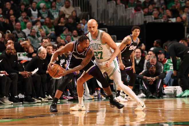 次节比赛,凯尔特人连续两节单节得分30+,且限制国王连续两节单节不足25分。国王率先一波10-2攻势追分,但凯尔特人连续三分命中,尤其是一度打出25-6攻势扩大20+领先优势,凯尔特人单节32-21净胜11分,上半场比赛结束凯尔特人扩大72-46领先国王26分优势。