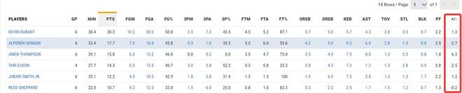 过去的6场比赛申京场均33.4分钟,拿到17.7分9.2篮板6助攻1.3抢断0.8盖帽,命中率43.8%,三分命中率33.3%,正负值-16火箭最差,申京作为一个身高2.11米的五号位效率值也很差。