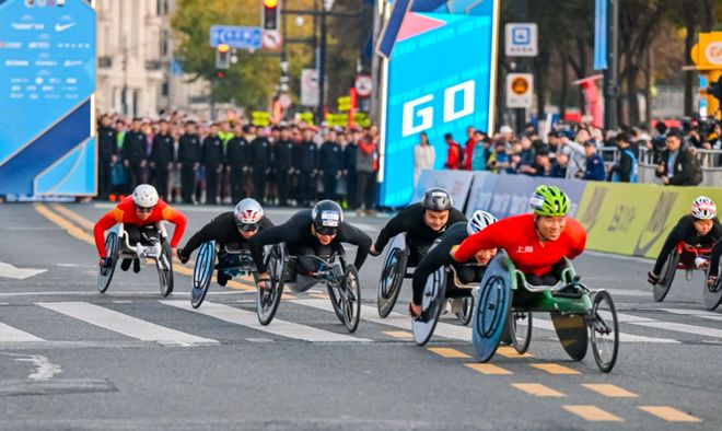 邀请竞速轮椅跑者也是上马这两年的一大特色。