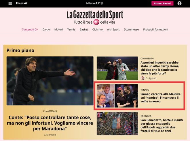 “以前《米兰体育报》的头版从来没有网球报道过,现在无论辛纳做什么,网球每天都会出现在所有报纸上。”他说道。