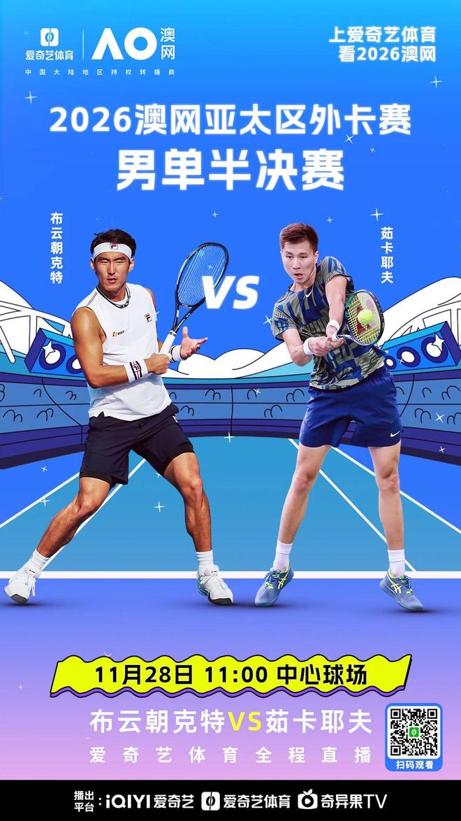 爱奇艺体育11月28日-29日将直播中央球场比赛(半决赛、决赛),请您不要错过。