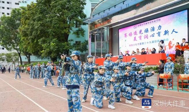 青少年身心健康、体魄强健、意志坚强,是民族生命力的重要体现,也是实现中华民族伟大复兴的重要基础。11月27日上午,罗湖外语实验学校以“赛场逐光燃活力,美育润心育新人”为主题,隆重举行2025年校园体育文化节暨第29届田径运动会。作为全国国防教育示范校,学校将本届运动会开幕式主题定为纪念抗战胜利80周年,全校师生以运动回望历史,以拼搏传承精神,共同谱写出一曲融合国防教育、体育精神的青春乐章。