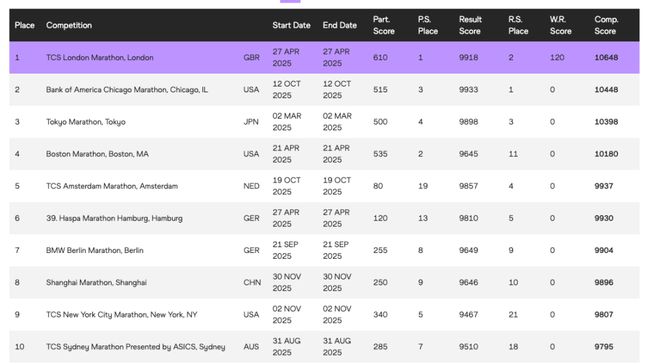 近日,在世界田联发布的2025年全球马拉松赛事排名中,上海马拉松首次跻身全球前十强,位居第八位,创造了中国马拉松赛事在该权威榜单上的最佳成绩。在这一全球顶尖的赛事评价体系中