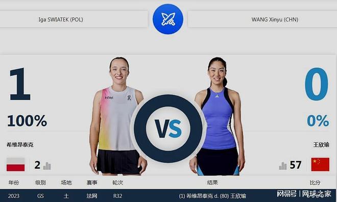 随后的第四场是欧洲队的斯瓦泰克对阵世界队的王欣瑜。在巡回赛的交手纪录上,斯瓦泰克1-0领先王欣瑜,且是送双蛋血洗。这一次虽然是表演赛,想必王欣瑜也希望能扳回一城,即使输也至少不能输得太惨。截止发稿时,比赛刚刚开始,球迷们快去给王美人加油吧!