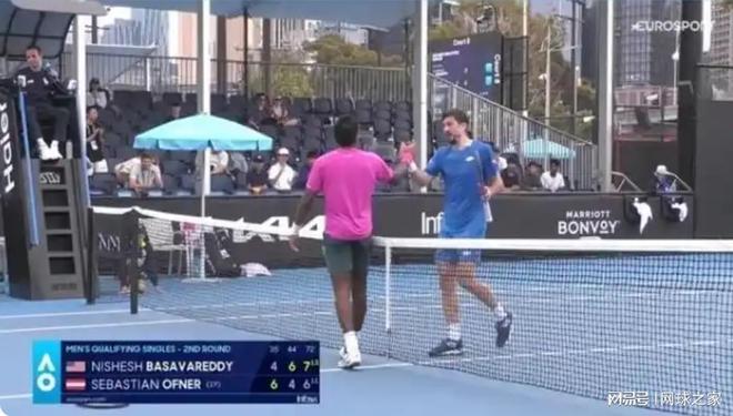 让人惊讶的是,当所有人都在期待接下来两人如何继续斗法时,此时奥夫纳突然之间握拳庆祝胜利,然后走到网前想和巴萨瓦雷迪握手。这一幕将大家直接整懵了,不知道奥地利人这是唱的哪出戏。