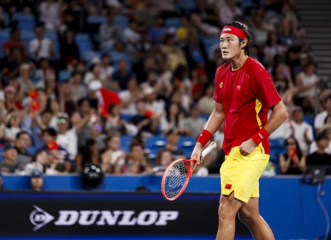 1月4日,中国队选手张之臻在联合杯网球赛B组小组赛中国队对阵加拿大的比赛中。新华社发