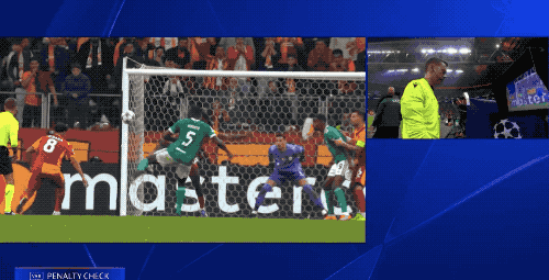 第14分钟,索博斯洛伊在防守的过程中,先是左手手肘击中伊尔马兹的面部,接着右手又打在伊尔马兹的脸上,裁判果断判罚点球。