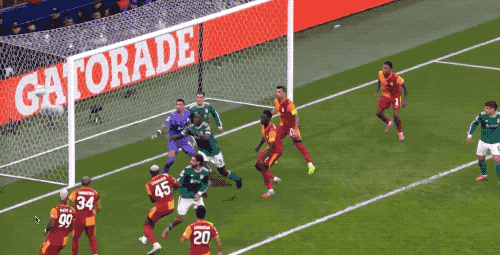 第48分钟,弗林蓬极限下底传中,埃基蒂克脚后跟射门,加拉塔萨雷门将及时反应,将球挡出。
