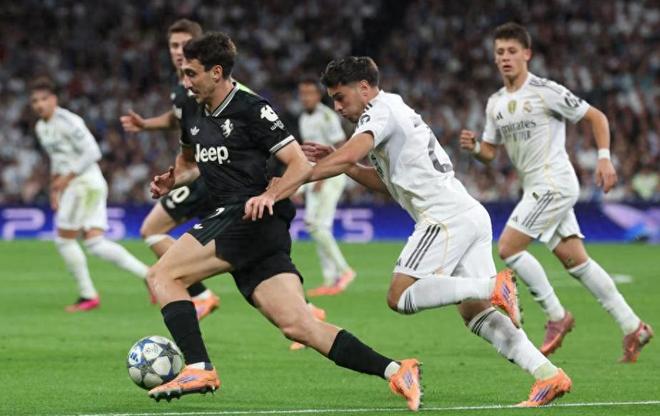 上半场,皇马控球率68%明显占优,完成11次射门3次打正,却没有创造绝佳机会,门将库尔图瓦做出2次关键扑救,化解了尤文威胁打门,其中姆巴佩、迪亚斯、居勒尔都有完成射门,最后都是没有转换为进球,比分0-0互交白卷。