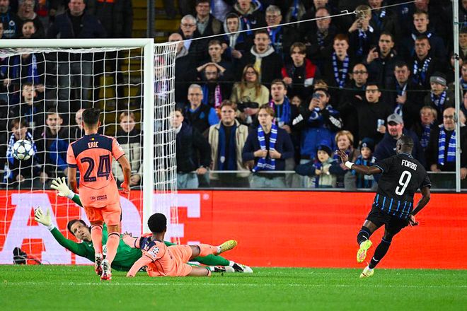 开场只有6分钟,巴萨的造越位战术延伸到了中圈附近,布鲁日打出精彩的反越位战术,博尔赫斯高速插上后送出舒服传中,特勒索尔迪铲射破门,布鲁日意外取得领先。