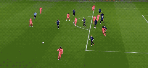 巴萨气势如虹,杀得兴起,10名球员都压过半场。第16分钟,布鲁日打出经典的快速反击,从本方禁区大脚解围到进球,全部都是一脚传球。