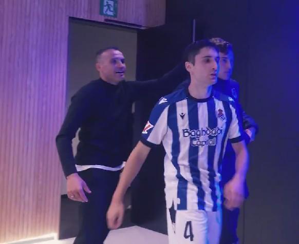 比赛结束后,皇家社会主帅塞尔希奥-弗朗西斯科、助教里瓦斯、战术教练何塞-罗德里格斯以及几名因伤缺阵的球员在走向更衣室的通道中向回到更衣室的球员一一表示祝贺。