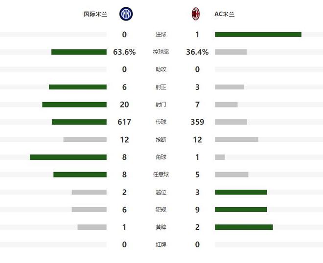 第28分钟国际米兰差点打破场上平衡,阿切尔比接到队友开出的左侧角球后,前点甩头攻门,可惜运气不佳,皮球击中立柱被弹出,7分钟之后,劳塔罗禁区内不停手抽射,被迈尼昂扑了一下后,又一次打在立柱上,靠着门框的帮忙,AC米兰带着0-0的比分,回到了中场更衣室。