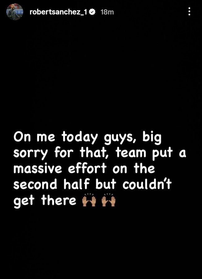 比赛刚开始5分钟,罗伯特·桑切斯出击踢倒姆伯莫染红,切尔西不得不以10人应战。随后,他在社媒上进行了道歉。