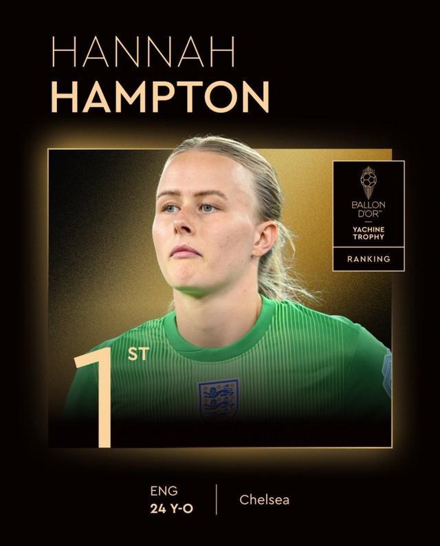 9月23日讯 金球奖官方消息,切尔西、英格兰女足的汉普顿获得2025年女足雅辛奖。