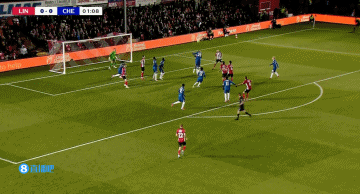 第41分钟,林肯城首开记录!切尔西后场长传转移被断,斯特基禁区单刀机会抽射破门,林肯城1-0切尔西。↓