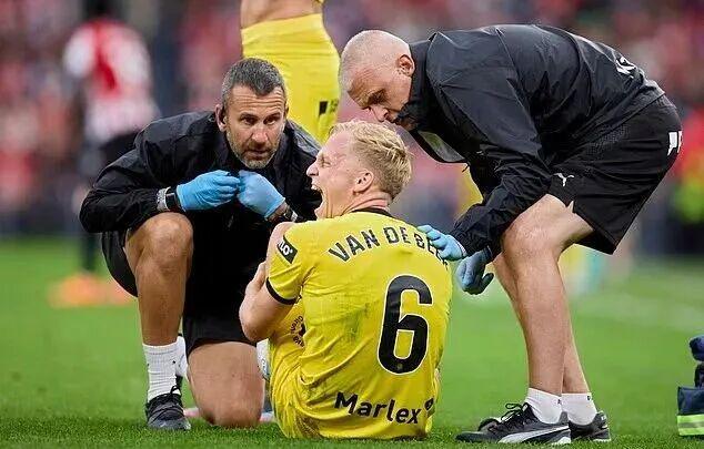 直到一周前,范德贝克才迎来替补复出,在对阵塞尔塔的比赛中登场8分钟。本轮客战毕尔巴鄂,主帅米歇尔·桑切斯让他时隔五个月首次首发,然而悲剧在第33分钟上演:他在无对抗情况下捂跟腱倒地,被队医搀扶离场。