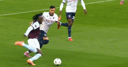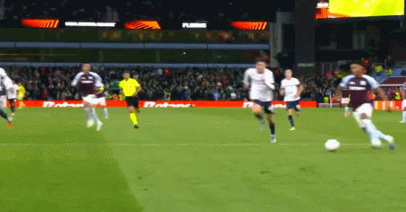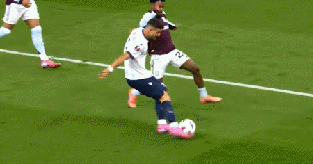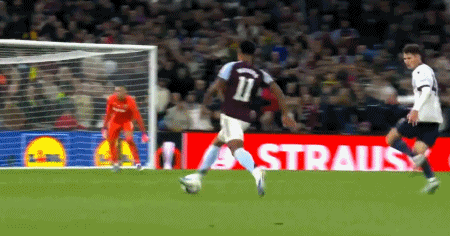 第90+3分钟,沃特金斯禁区外晃开角度起脚射门,皮球打在防守人身上出底线