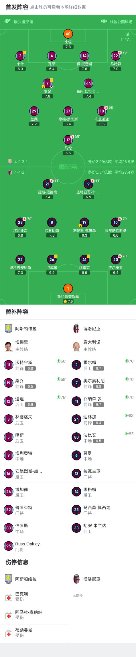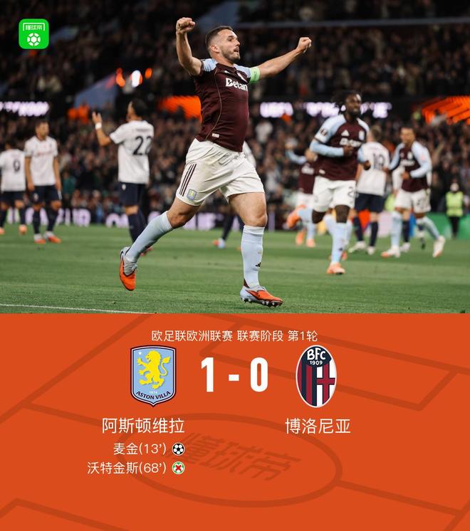 维拉10博洛尼亚取新赛季首胜,麦金制胜,沃特金斯失点