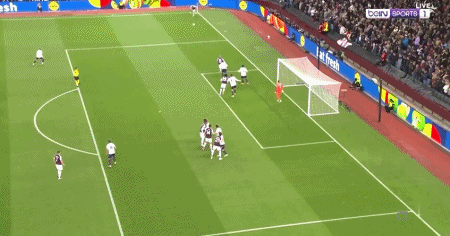 第63分钟,禁区右路横传门前,沃特金斯抢前点射门被破坏