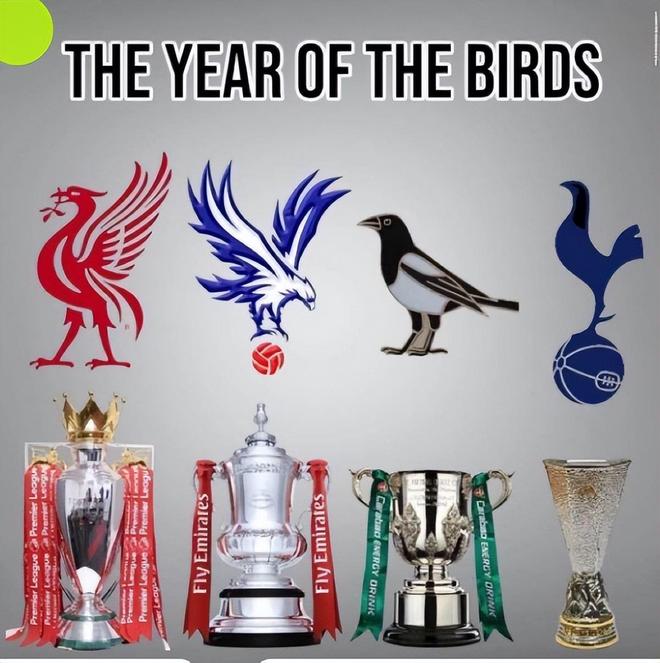 另外值得一提的是,不知道是不是巧合,上赛季夺冠的英超球队队徽都有一只鸟。有人开玩笑说:“这是属于英超的鸟年。”这也意味着新赛季英超能有6支球队出现在欧冠赛场,让“宇超”之名进一步深入人心。