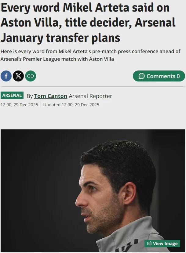 阿尔特塔出席了对维拉的赛前新闻发布会,我们来看看阿森纳主帅的发言。