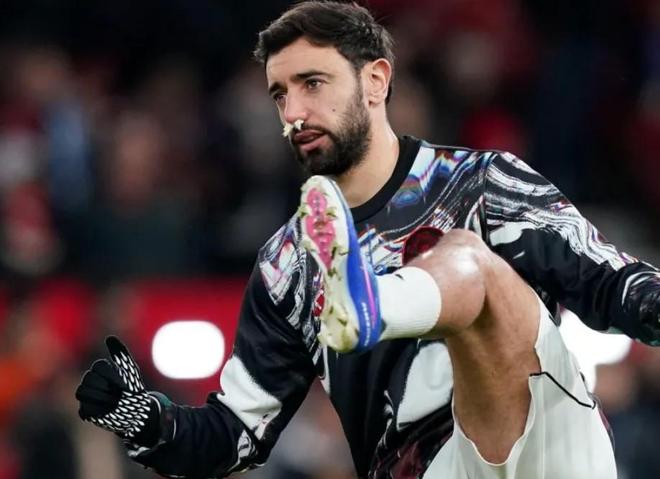 赛前被队友暴击,热身时B费被利马的一脚传球砸到流鼻血