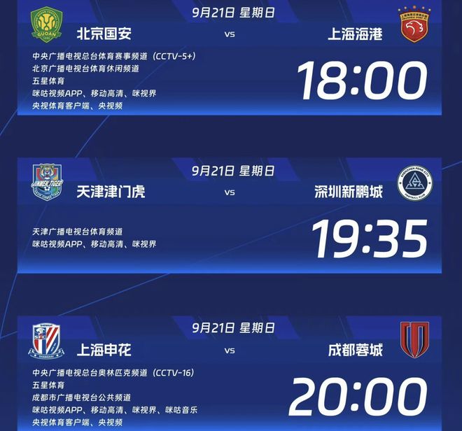 央视直播中超2场争冠战,3队冲榜首!申花盼赢蓉城,国安或3连败