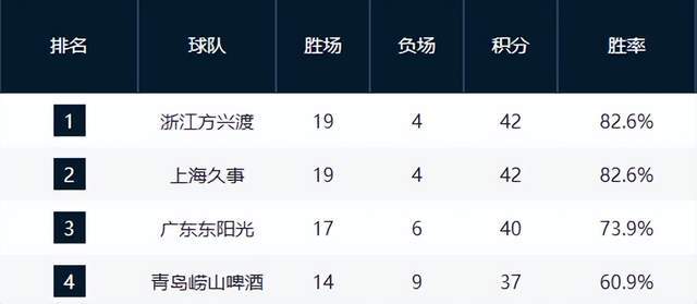 上海追平广厦,广东悄然掉队,青岛重返前4,山东第6,黑马创历史