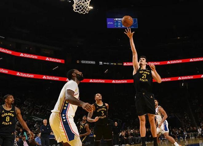 甚至勇士的内线是真没法看。不断丢篮板球,全场比赛光是篮板球就输了21个,这样的差距是巨大的。再加上篮下尺寸不够,他们只能收缩篮下,进攻端投不进之后还无法保护篮板球,内线的弊端已经越来越明显了。